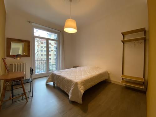 Chambre de 14 m² avec sa salle-de-bain et ses wc attenants et privatifs. Accès direct au balcon filant, la chambre donne sur une jolie cour arborée.